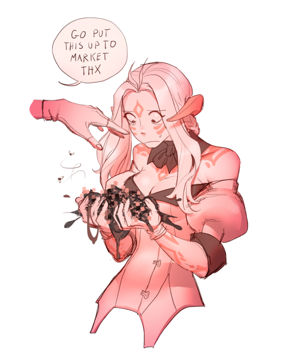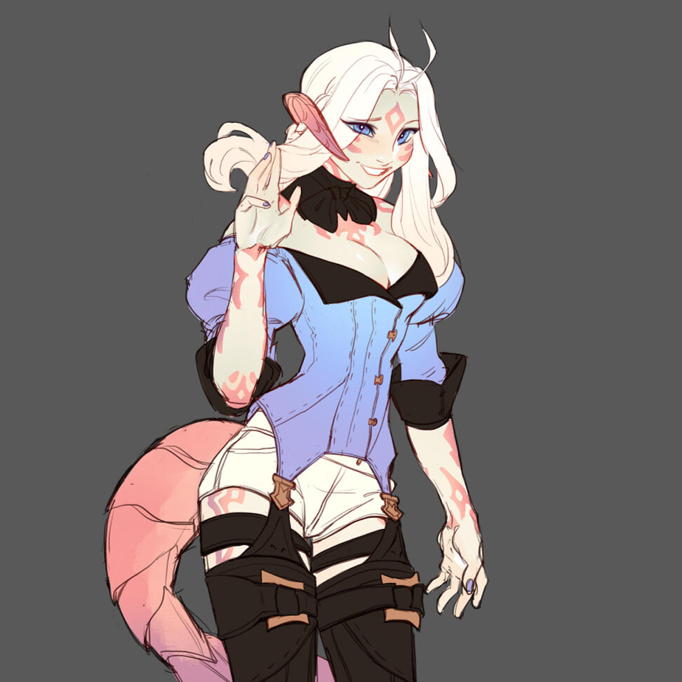 Through the magic of glamour prisms, Shrimp's most notable features are her strikingly pink scales. This - combined with her unusual moniker - make it impossible to make out if she is xaela or raen at a glance. Unusual penchant for secrecy aside, she otherwise seems energetic and perpetually distracted.